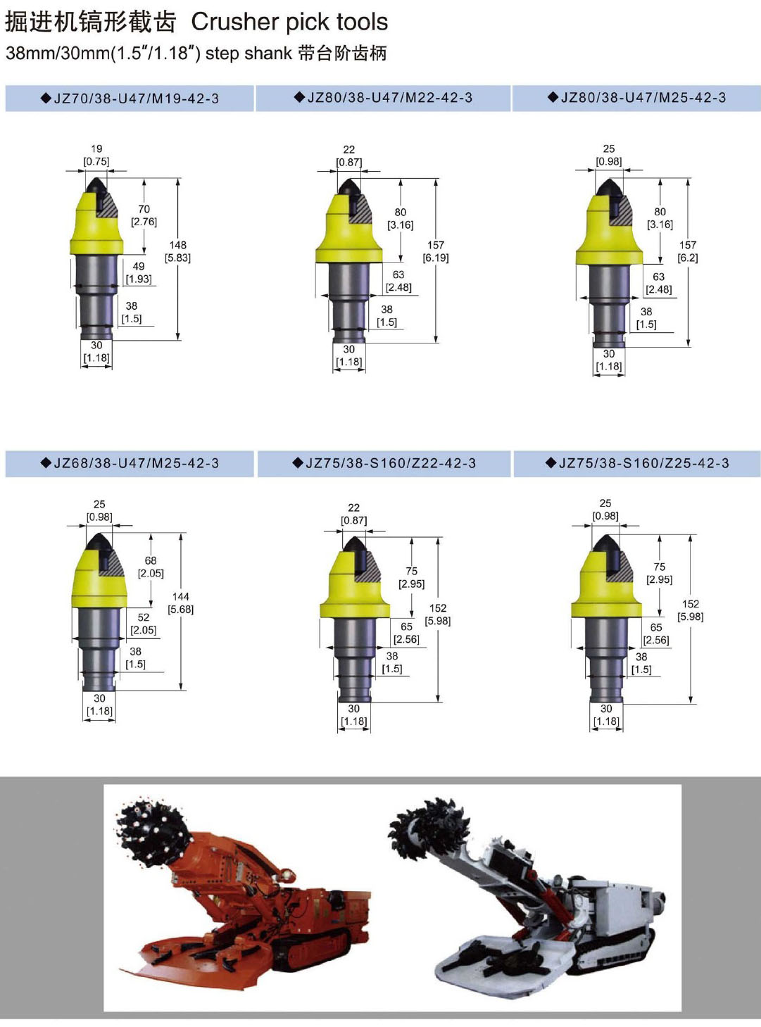 掘进机镐形截齿带台阶齿柄