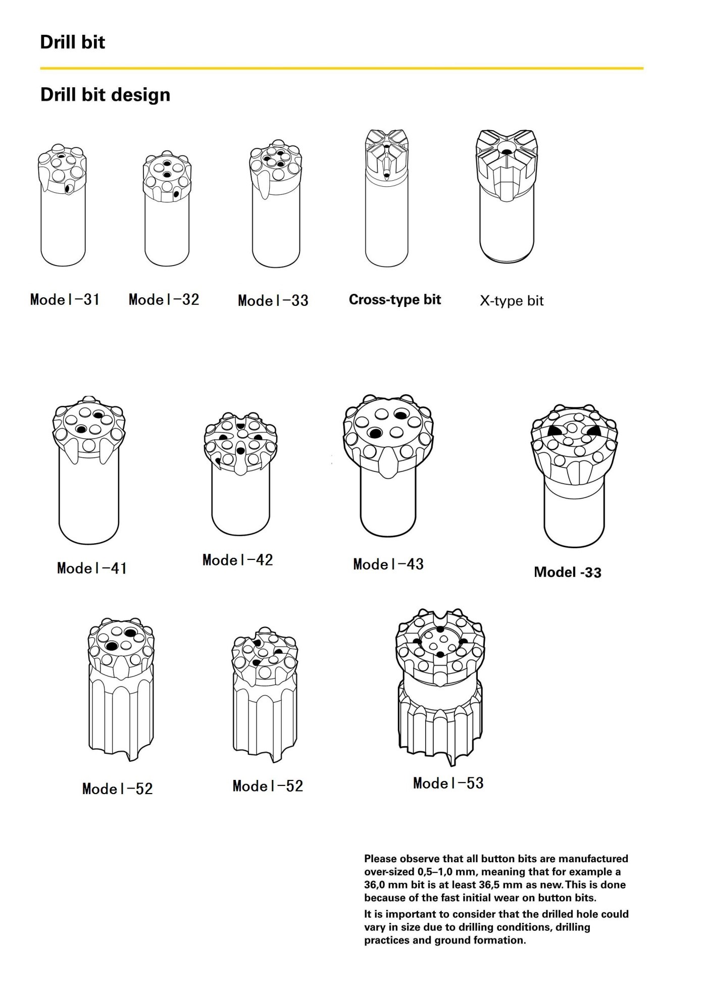 Thread button drill bits are made by high quality alloy steel barand tungsten carbides. Through heat treatment, our drilling tools are toughenough to meet rock drilling demands and have the least loss of energy whiledrilling the rocks. Besides, we can design customized thread button drill bitsaccording to different drilling application, and custom drill bits areapplicable to drill soft rock, loose-medium rock and hard rock. |
